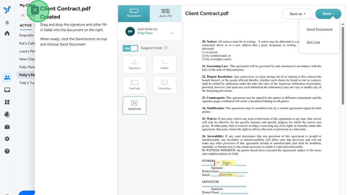 Click on the “eSignature Docs” tab on the left panel to view all your signature requests.